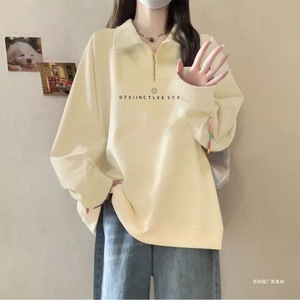 秋冬加绒遮肉大码显瘦美式领宽松半拉链卫衣女上衣服180斤