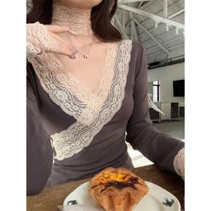 纯欲辣妹V领蕾丝花边修身长袖上衣女2025秋季新款高腰A字花边半裙