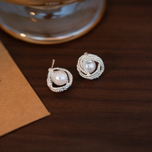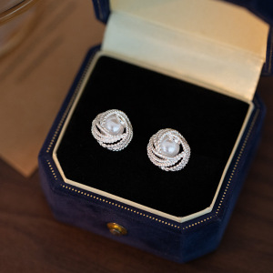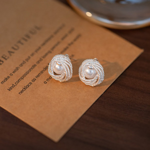 银针复古法式中古风珍珠耳钉小众高级感轻奢气质大气百搭耳饰女