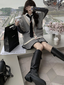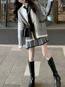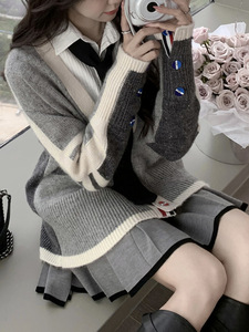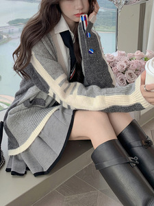 伊利诺夫学院风彩点混纺高克重羊毛马海毛开衫外套女