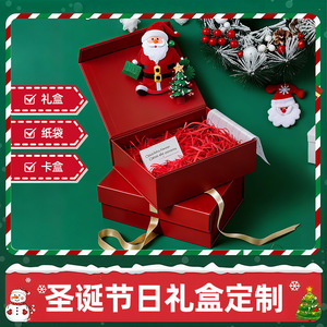 定制圣诞节平安夜礼品包装盒 一片式折叠盒高端磁吸翻盖礼物彩盒