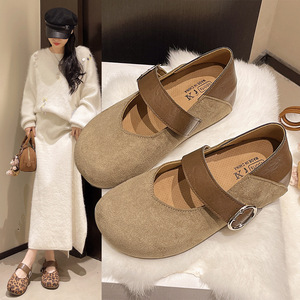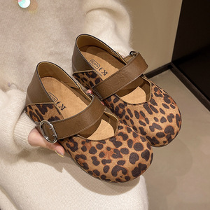 复古豹纹玛丽珍鞋女秋季2025新款法式浅口单鞋一字带平底芭蕾舞鞋