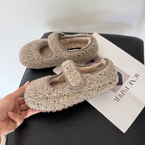 2025冬季魔术贴法式加绒保暖面包鞋女一脚蹬毛毛单鞋女博肯棉鞋
