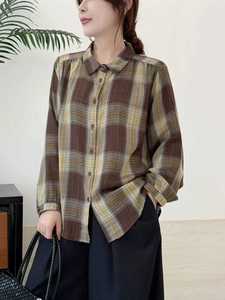2025秋季新款卡通印花格子双层纱女士开衫长袖衬衫上衣