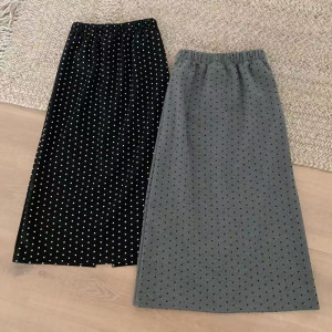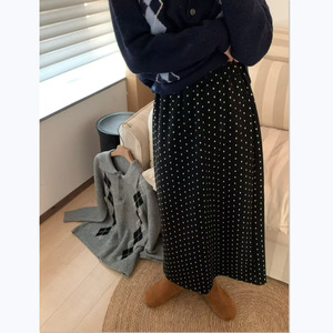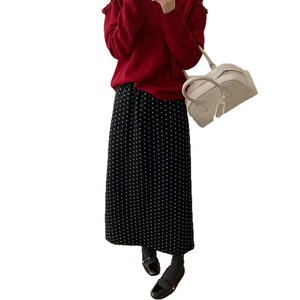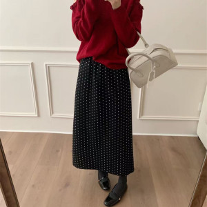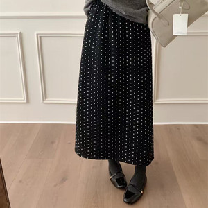 波点毛呢半身裙女2025冬季新款高腰显瘦后摆开叉字直筒长裙