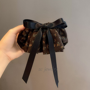 法式温柔碎花蝴蝶结飘带懒人夹韩系气质慵懒风马尾夹大号鸭嘴夹女