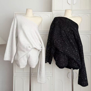 亮片宽松慵懒风针织衫氛围感复古长袖毛衣+短裤套装