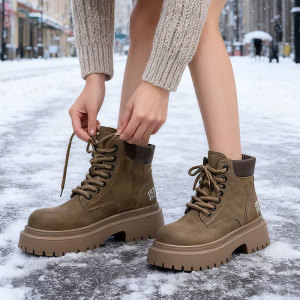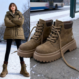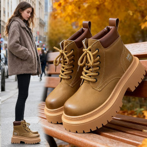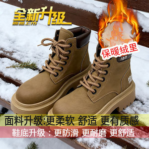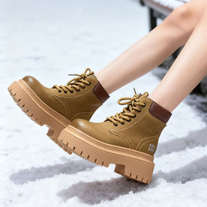 网红工装大黄靴秋冬季新款加绒英伦风短靴美拉德厚底防滑马丁靴女