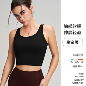 新款时尚瑜伽背心上衣固定杯健身文胸女防震聚拢中高强度运动内衣