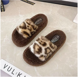 小个子厚底毛毛拖鞋女外穿2025秋冬新款一字豹纹毛绒拖鞋外穿拖鞋