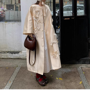 华丽真丝手工盘花奶油缎面风衣直筒双层半裙2025秋季新款时尚套装