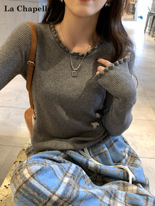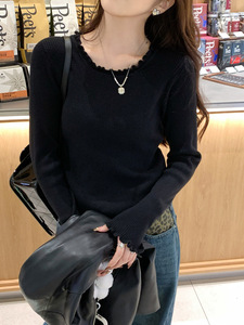 高级感超好看的针织衫女2025新款初秋木耳边内搭打底圆领毛衣上衣