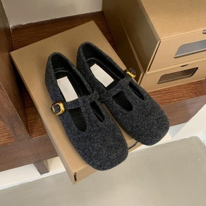 法式平底浅口单鞋复古玛丽珍毛毛鞋女2025秋季新款灰色豆豆鞋