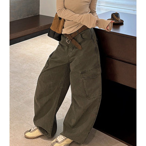 深圳2025新款南油女装欧货高腰显瘦侧边口袋港味弯刀工装阔腿裤女