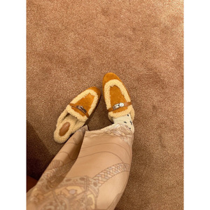 【高定私版】小众风金属扣羊毛穆勒鞋女懒人拖平底包头轻盈半拖鞋