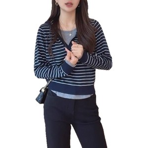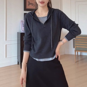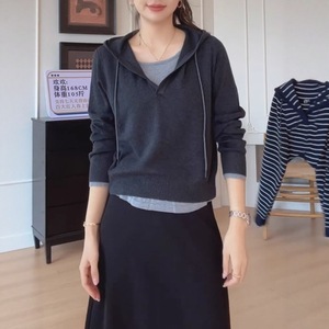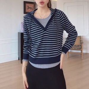 韩系慵懒风条纹连帽针织衫2025秋季大码胖MM显瘦洋气拼接长袖上衣