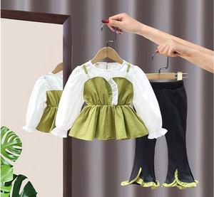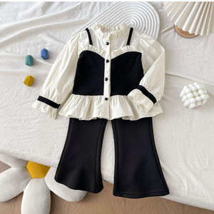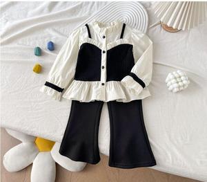 女童春秋套装2025新款儿童假两件波点上衣+休闲喇叭裤两件套潮