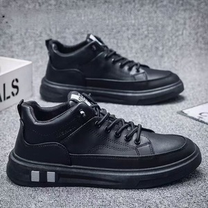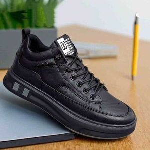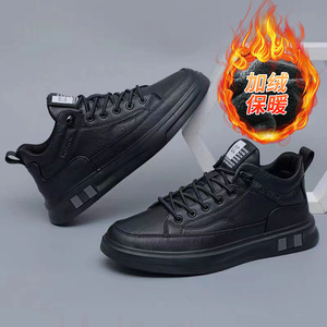 男士休闲鞋透气百搭男鞋软底运动鞋男款户外皮面中帮一脚蹬板鞋男