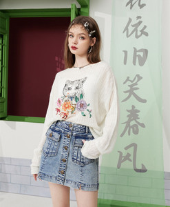妖精的口袋猫咪白色罩衫针织衫2025秋冬季新款外搭轻薄款宽松上衣