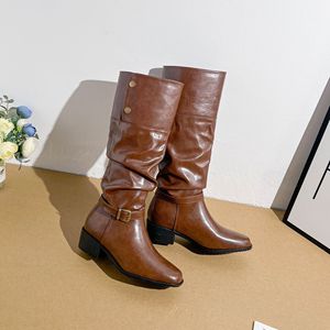 秋冬粗跟复古褶皱堆堆西部靴女百搭两穿翻折美拉德长筒骑士靴