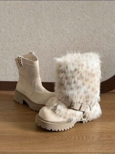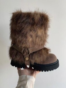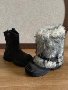 毛毛雪地靴女冬季2025新款加绒加厚冰岛短靴裤管厚底大头东北棉鞋