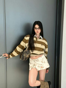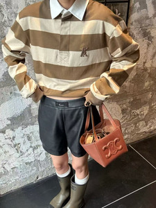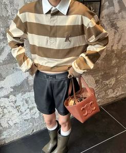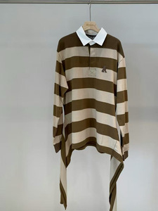 OPEN YY设计师品牌25秋冬款polo领撞色条纹设计感系带长袖休闲T恤