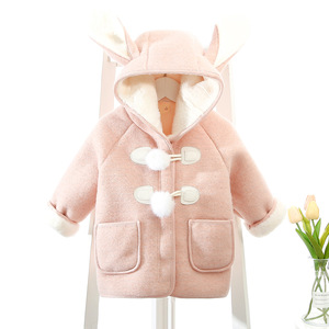 女童大衣外套2025冬季新款韩版儿童加绒加厚牛角扣毛呢大衣秋冬装