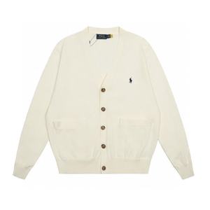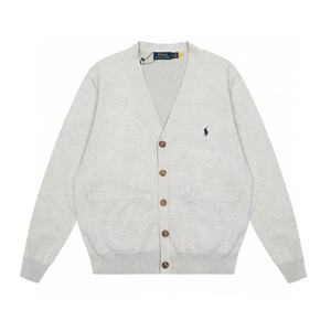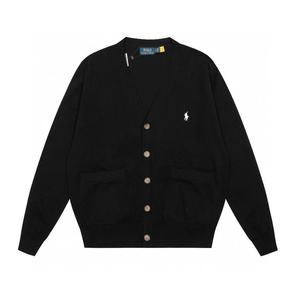 跨境外贸秋冬新款拉夫RLV领小马刺绣logo平纹针织基础开衫男女