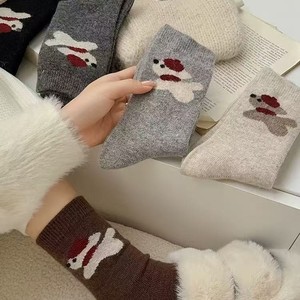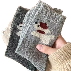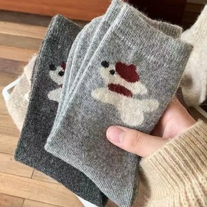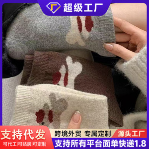 秋冬款毛绒袜子女中筒袜堆堆袜冬天卡通可爱小狗灰色袜子冬季保暖