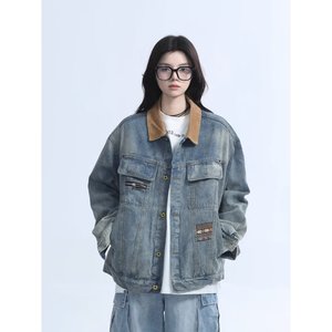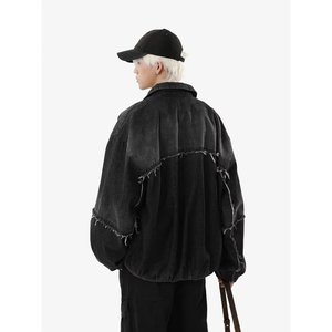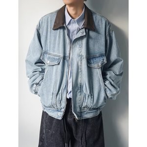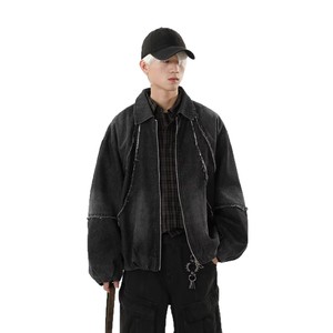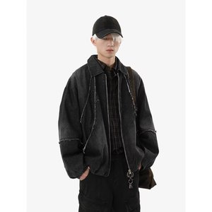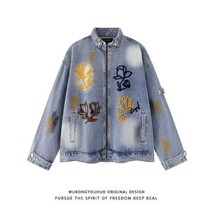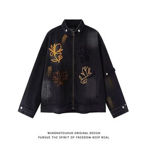 美拉德扎染皮衣外套男款秋冬设计感小众飞行员夹克美式复古机车服