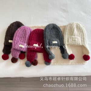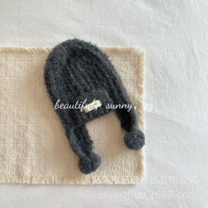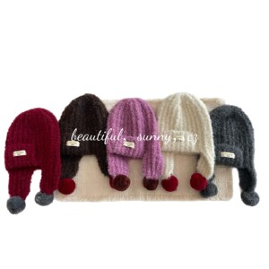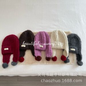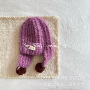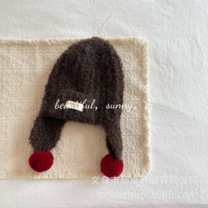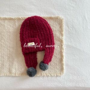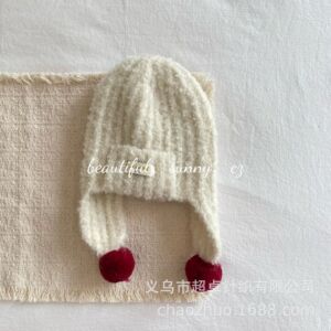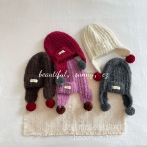 INS显白潮流毛线帽儿童复古撞色杨梅球护耳帽