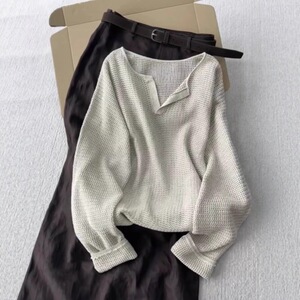 老钱风V领镂空针织衫女2025早秋穿搭慵懒风宽松显瘦长袖打底上衣