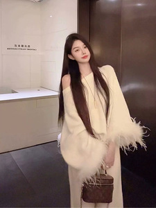 104-6 韩系设计款露肩毛毛拼接宽松大版针织毛衣0810