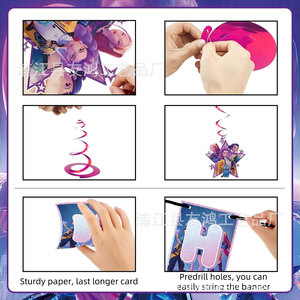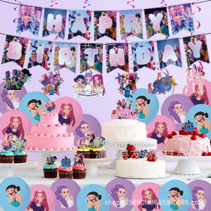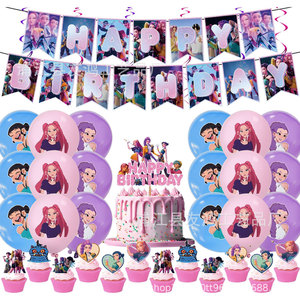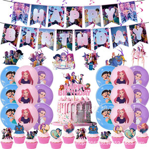 亚马逊新POP猎魔女团生日派对用品装饰套装生日拉旗气球蛋糕插旗