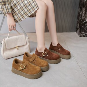 厚底全包勃肯鞋女2025新款真皮复古小个子增高单鞋软底轻便休闲鞋