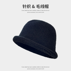 日系卷边纯色百搭渔夫帽子女秋冬季保暖针织毛线帽时尚优雅盆帽