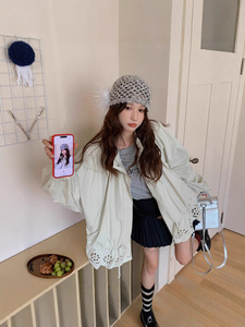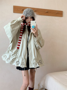 实拍ins韩国短款风衣外套2025年新款设计感立领花苞镂空薄外套女