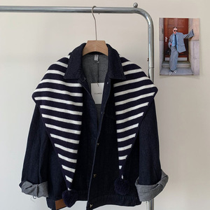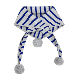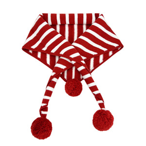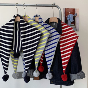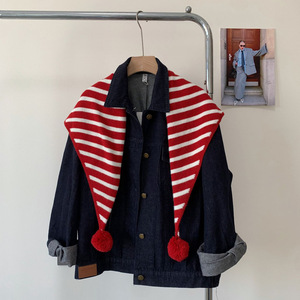 新款韩代可爱ins毛球针织围巾女秋冬拼色条纹三角巾装饰保暖披肩
