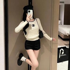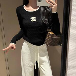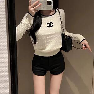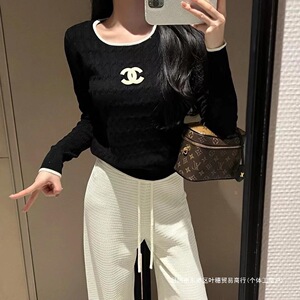 欧货轻奢2025新款纯色打底圆领刺绣针织衫长袖上衣麻花辫毛衣女潮