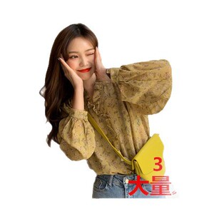 2025秋季新款小衫韩版洋气温柔风碎花雪纺衫长袖打底衫泡泡袖上衣