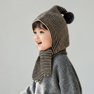 儿童帽子围巾一体帽秋冬季男童女童针织帽毛线帽护耳帽宝宝保暖帽