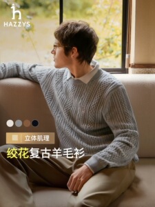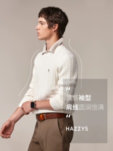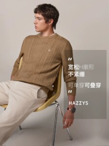 Hazzys/哈吉斯25秋季新款男士圆领保暖针织衫上衣一件代发