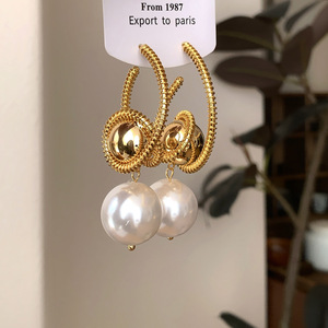 2025秋冬新款欧美气质夸张设计感金属珍珠耳环时尚个性高级感耳饰