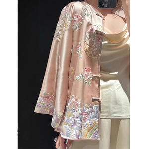 【略施粉黛】新中式复古宋锦外套女秋季新款重工刺绣盘扣国风上衣