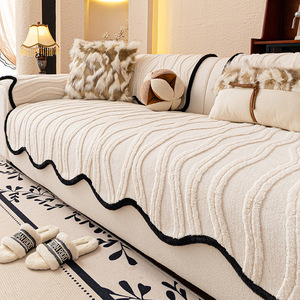 奶油风秋冬季加厚毛绒沙发垫2025新款固定防滑坐垫直排盖布防猫抓