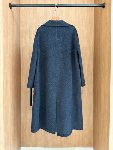 H家2025新款秋冬韩版翻领宽松型赫本风双面羊绒大衣百搭款系带外
