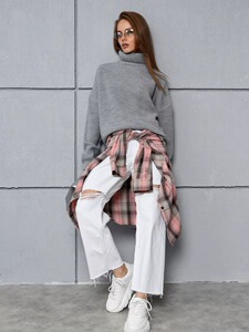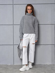 欧美跨境亚马逊女装货源高领慵懒风女式针织衫纯色女长袖秋冬毛衣