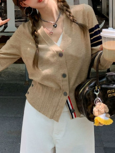 HuoHo 坚果松饼 英伦风V领针织衫女秋季新款2025高级感短款毛衣