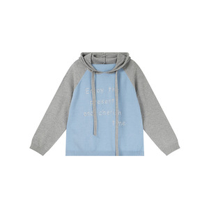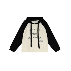双天YY 2025秋季新款大码女装胖妹妹撞色字母连帽针织毛衣女F526