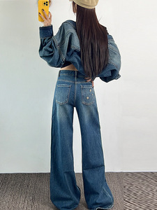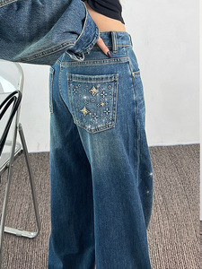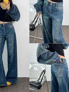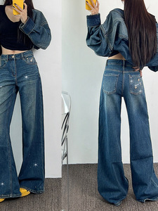 欧货2025秋季新款轻奢高品质烫钻直筒牛仔裤百搭时尚高腰显瘦长裤